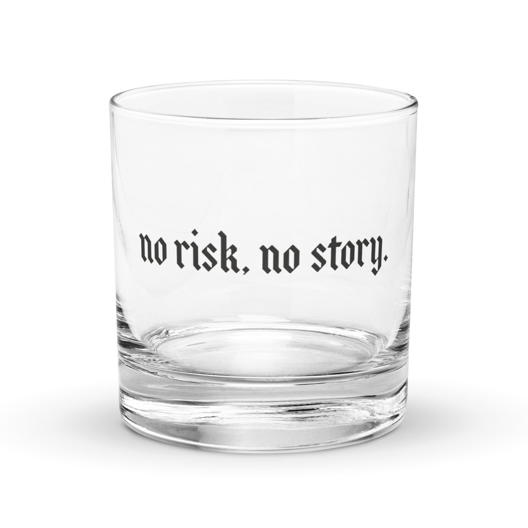 This rocks glass features the mantra "No Risk, No Story" in clean, bold lettering. It's a toast to the adventures you've taken, the leaps you've made, and the moments that became memories because you said yes instead of maybe.
