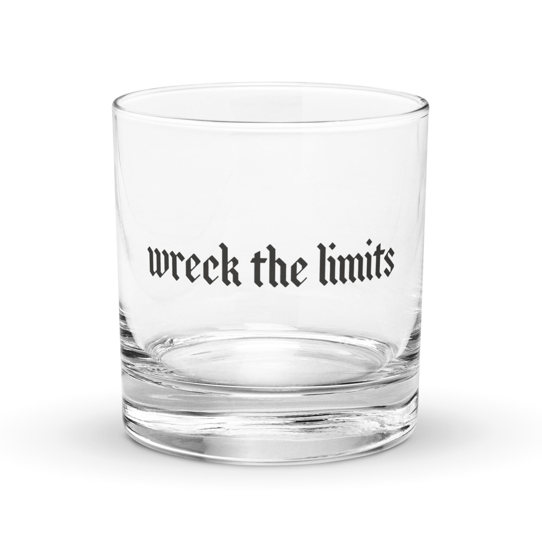 This rocks glass features the declaration "Wreck the Limits" in bold lettering. For the ones who push harder, go further, and refuse to accept what's been decided for them.
